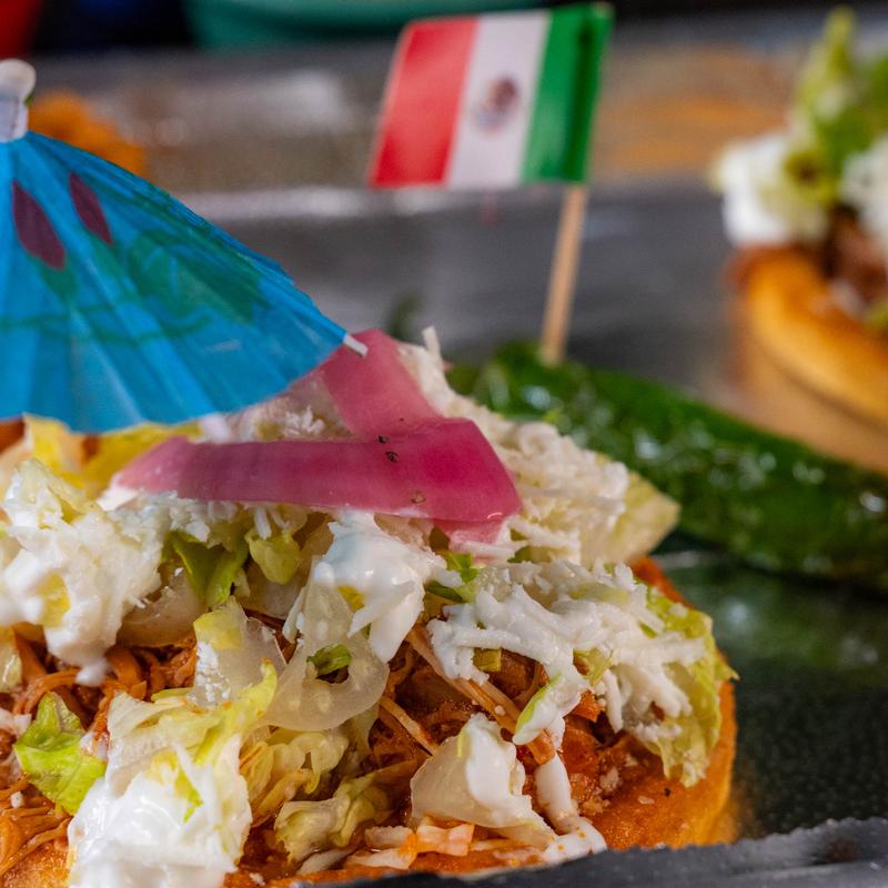 2 sopes choice of protein, beans, lettuce, sour cream, cotija cheese, and pickled onions.
